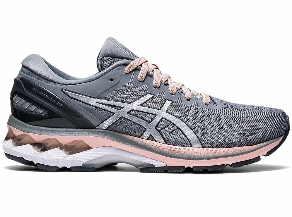 Enjoy excellent comfort and advanced support with the GEL-KAYANO® 27 running shoe. The redesigned mesh upper helps keep feet cool, while the sole is more flexible to help promote a more natural roll through the gait cycle. This process starts in the heel with added flex grooves that isolate the initial impact to force a softer and smoother feeling at footstrike. At midstance, the foot should stop pronating and re-supinate for an efficient toe-off. This shoe also incorporates DYNAMIC DUOMAX® technology to help support the foot and increase stability for runners whose feet roll inward too much (overpronate). The midsole integrates SPACE TRUSSTIC™ technology, which provides stability and reduces the overall weight to help promote a smoother transition from footstrike to toe-off. This added stability is complemented by deeper forefoot flex grooves that create a smoother roll through toe-off, allowing the shoe to move more naturally with the foot. Lastly, a large section of reflective materials in the rearfoot helps keep runners visible when running in low-light conditions. The GEL-KAYANO® 27 model is an excellent choice for both competitive and non-competitive runners looking for an everyday trainer that combines comfort with support.