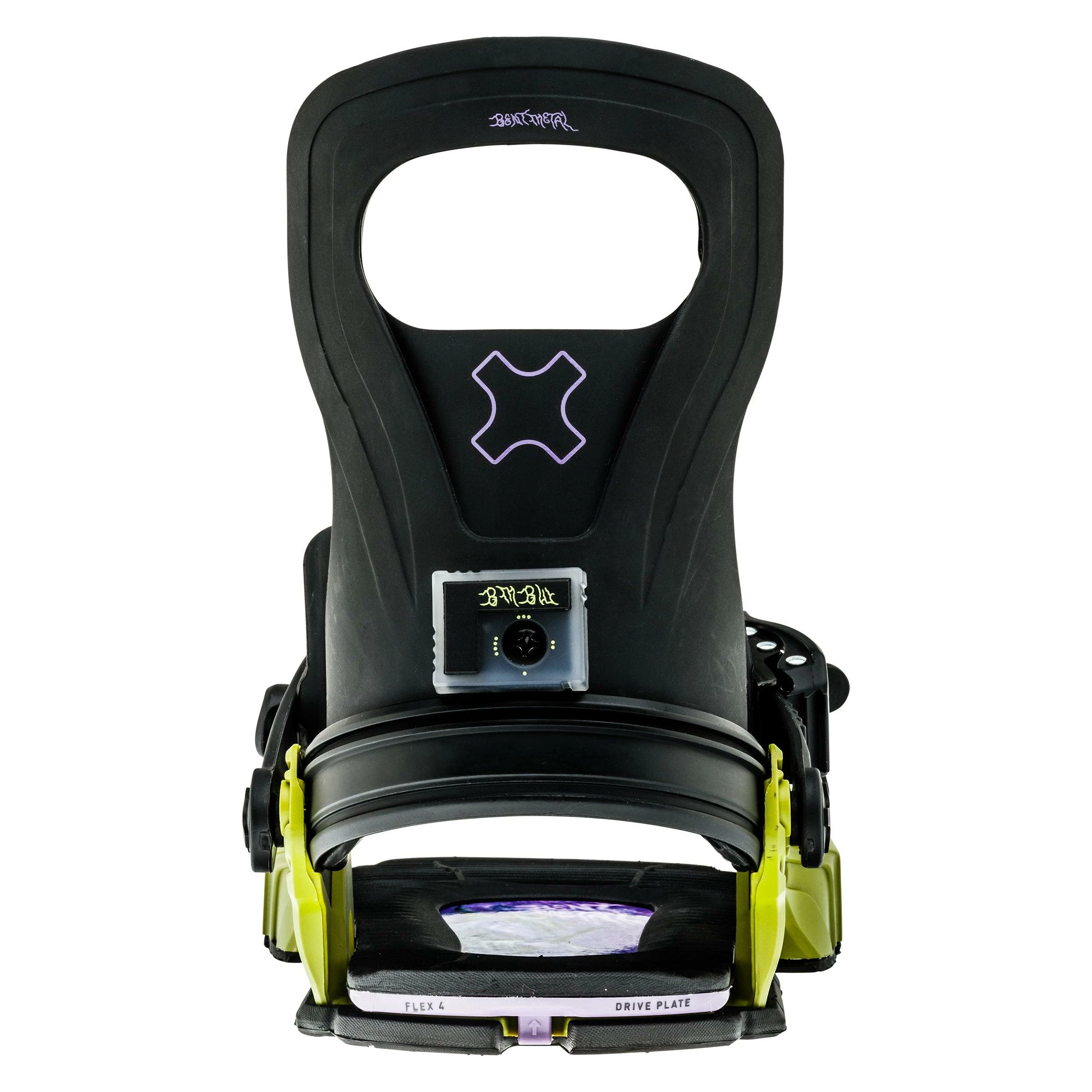 Dynamic freestyle integration. The Bent Metal Logic has the softest flex control combination of a Urethane Highback and Bi-Axial fiber Drive Plate allows you maximum freedom of movement in freestyle terrain and unrestrained flow in powder or smooth groomers. A aysmetric soft power band in the dyadic construction Dual Band ankle strap provides lateral support and maximum medial mobility. Love Handle ureathane highback is the killer feature for hiking those hits.