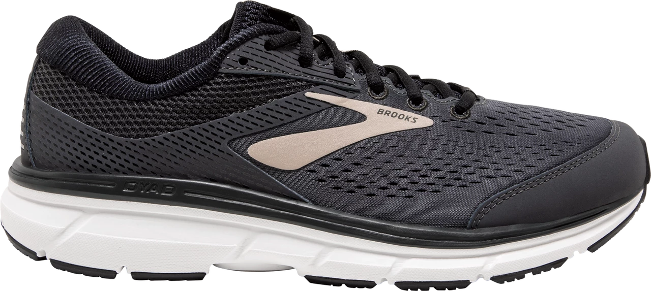 Upgraded for 2018, the Brooks Men’s Dyad 10 is A perfect home for feet, now lighter with a roomier fit. BioMoGo DNA provides a soft feel that dynamically adapts to every step. A wide platform with Dual Arch Pods provides stability underfoot without interfering with a neutral stride. Those with orthotics or flat and voluminous feet find comfort in the improved, spacious fit of the soft engineered mesh upper with these flat arch running shoes.