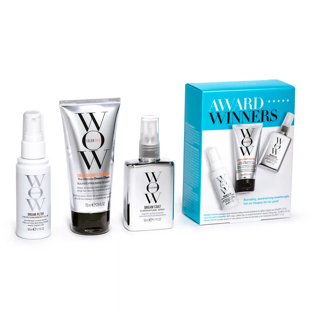 Set Description: Kit includes the following 3 game-changing, innovative, award-winning products for all hair types: Dream Filter Pre-Shampoo Mineral Spray. You may not realize it but your shower water contains minerals that can dull and darken your hair. It’s the #1 reason why hair color starts losing its freshness a few weeks after it’s been done. Dream Filter spray gently lifts off mineral deposits to reveal your freshest, brightest color and silkiest texture in under 3 minutes. Color Security Shampoo Revolutionary sulfate-free formula has no typical ingredients (silicones, thickening agents, conditioners, oils, pearlizing agents) that do not easily rinse off, leaving build up on your hair and scalp that can dull hair or block follicles. Unique100% clean, sulfate-free, “no-residue” formula won’t dull hair or block growth, for freshest, healthiest, glossiest results. Dream Coat Supernatural Spray #1 humidity-blocker and unequaled frizz-stopper with over 20,000 5-star reviews! Breakthrough moisture-resistant technology, activated by blow-dryer heat, leaves hair silky, glossy and “immune” to frizz. The secret to creating “glass hair” styles, Dream Coat lasts through up to 3 shampoos.