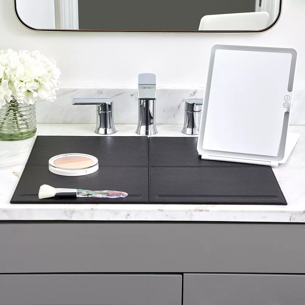 - Makeup mat easily wipes clean and folds for storage.