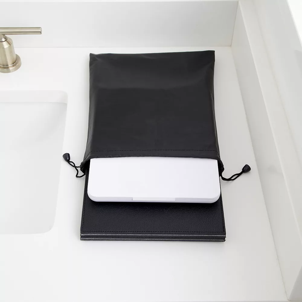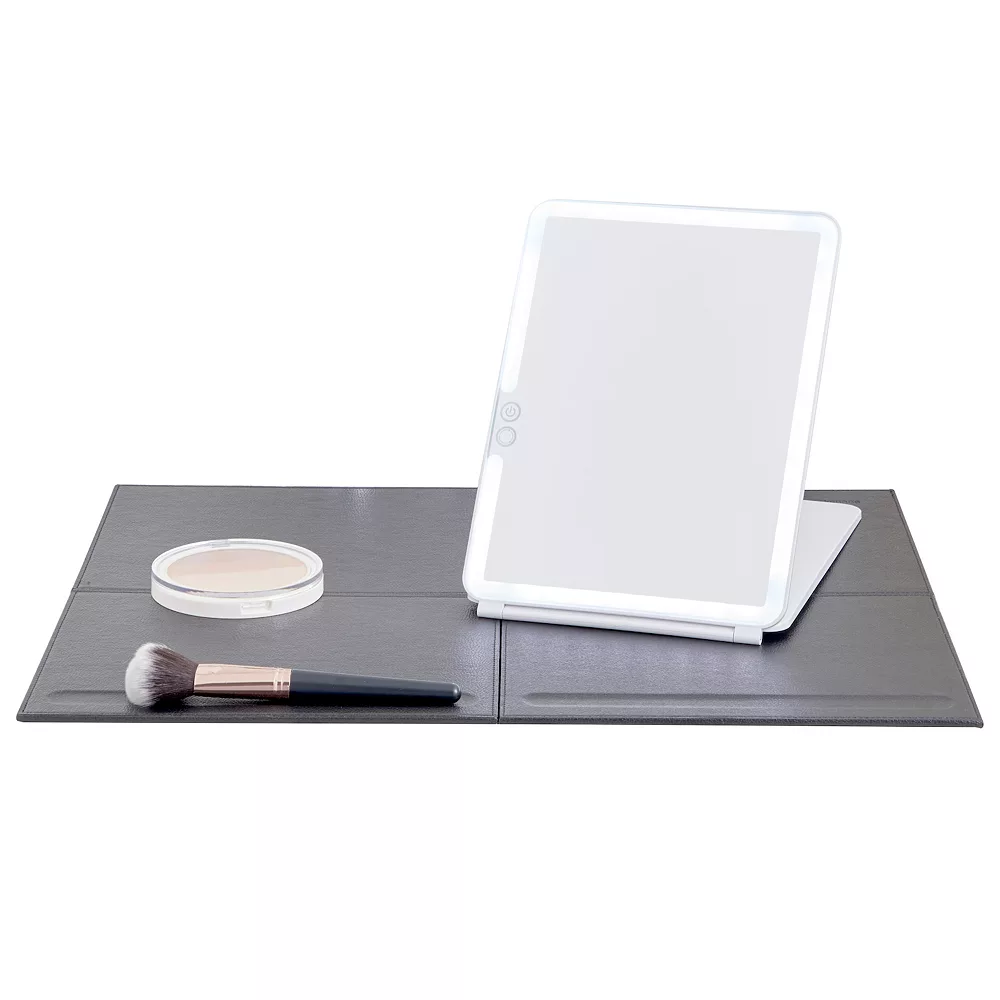 This travel-ready GloTech LED Mirror & Beauty Mat Set is a must have for your carry-on luggage.