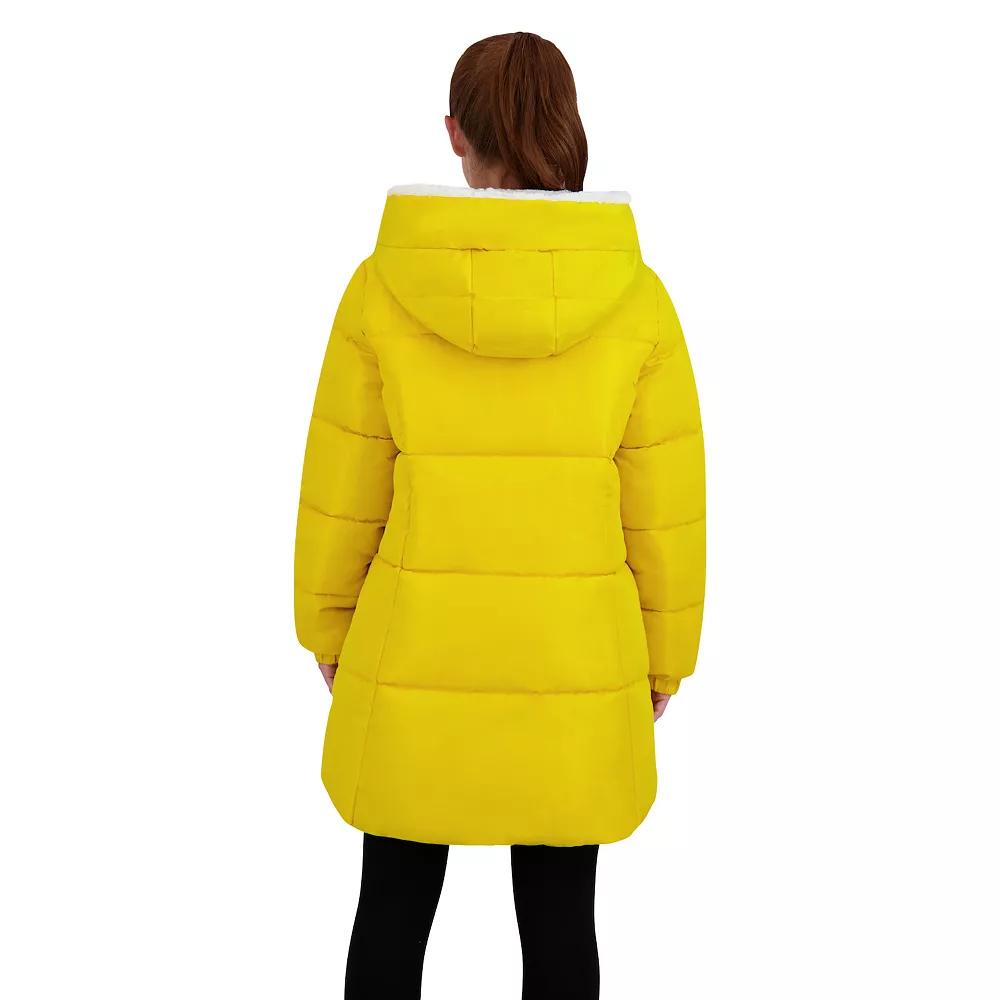 You’ll be cute and cozy all winter long in this juniors’ long puffer coat by madden girl.