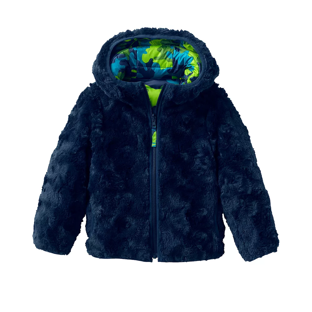 They can choose the soft fleece side or water- and wind-resistant quilted side of this reversible kids’ jacket by Lands’ End.