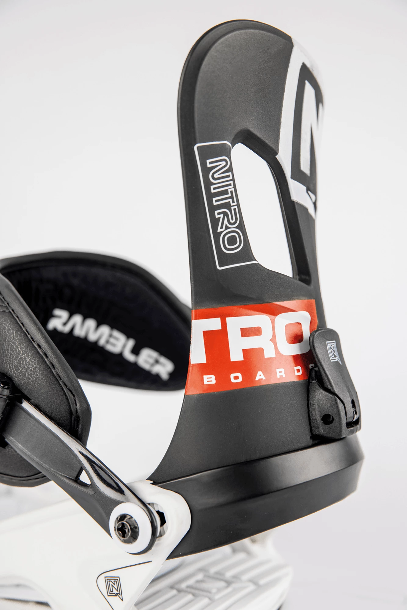 An all-purpose binding that shreds the fine line between freestyle and freeride with grace, the Nitro Rambler Snowboard Bindings feature a mid-flex “6” with enough looseness to tweak and enough power to lay into a turn. The Rambler features the Transmission Base, Ergo Highback, and a 3˚ canted footbed to keep things nice an ergonomic for all-day comfort.
