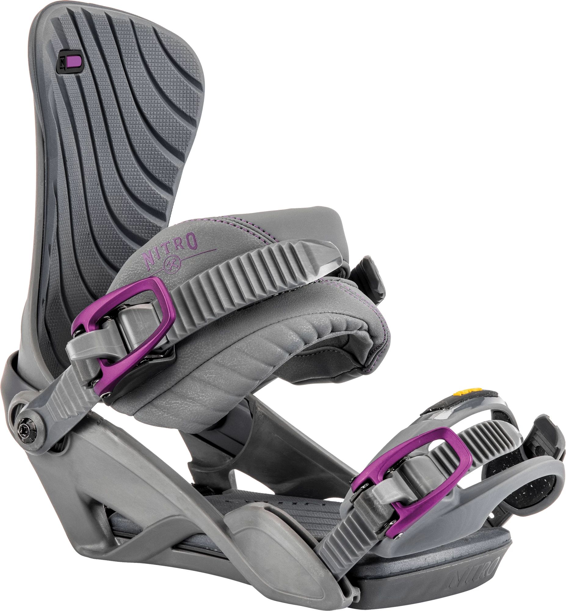 The team’s favorite binding, The Ivy, is a staple in our women’s line because of its snug boot fit and performance technologies. The perfect flexing Stealth AIR base frame and AYSM Women’s Highback provides the control needed to explore the entire trail map and learn some new tricks in the park with confidence. Nitro’s AIR Dampening and 3°Canted footbeds provide familiar support and comfort that lasts day after day. The Übergrip Toe Strap with Vibram© EcoStep™ rubber and durable stainless steel Cable Connectors will provide unmatched durability, and a sure foothold only found in Nitro bindings. The Ivy is backed by some of today’s best freestyle women snowboarders with top results in the X-games and Olympics to being featured in full-length snowboard films. The Ivy fit and durability are what every riding dreams of!