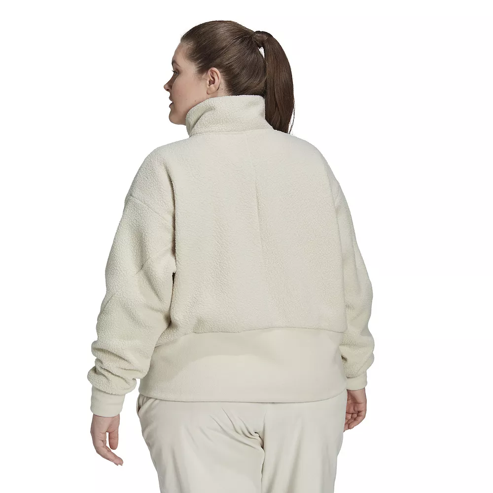 Comfort in seconds. That’s what this plus size adidas jacket is all about. Slip it on and right away you’re blanketed in the warmth of soft fleece. The loose shape layers easily, and while it may cover up part of your outfit, the jacket in no way hides your style.