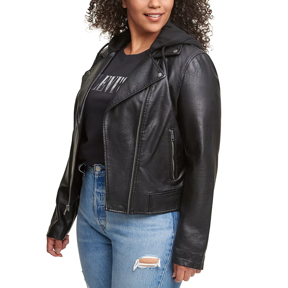 Add an edgy touch to any look wearing this women’s Levi’s faux-leather motorcycle jacket.