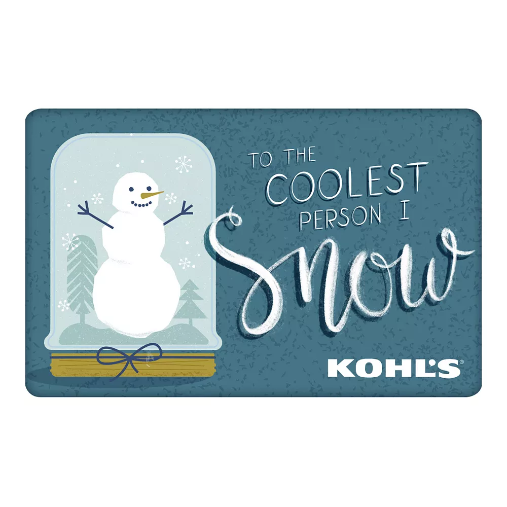 To make a purchase with the card, just visit any Kohl’s Department Store and present your card at the time of purchase. Or, use the card as payment during online checkout at Kohl’s.com. It works the same as cash, and the remaining balance stays on the card until it’s used up. Discounts not available on gift cards. *This card is redeemable for merchandise at any Kohl’s store or online at Kohl’s.com. This card is issued by and represents an obligation of Kohl’s Value Services, Inc. Except where required by law, this card is non-refundable, may not be redeemed for cash or for the purchase of Gift Cards and cannot be applied to any Kohl’s Charge account balance. This card has no expiration date. The unused value of lost, stolen or damaged cards can be replaced with required proof of purchase. See store for details. Receipts for purchases made with this card will show the remaining card balance. Card balance may also be obtained from a Kohl’s Sales Associate, calling 1-800-655-0554 or online at Kohls.com Do not mail cards to the Kohl’s Payment Center. 11/10