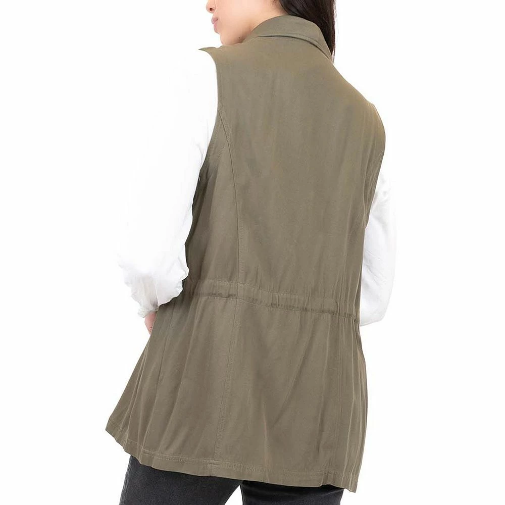 Layer in a fashionable look with this women’s Coffee Shop drape-front vest.
