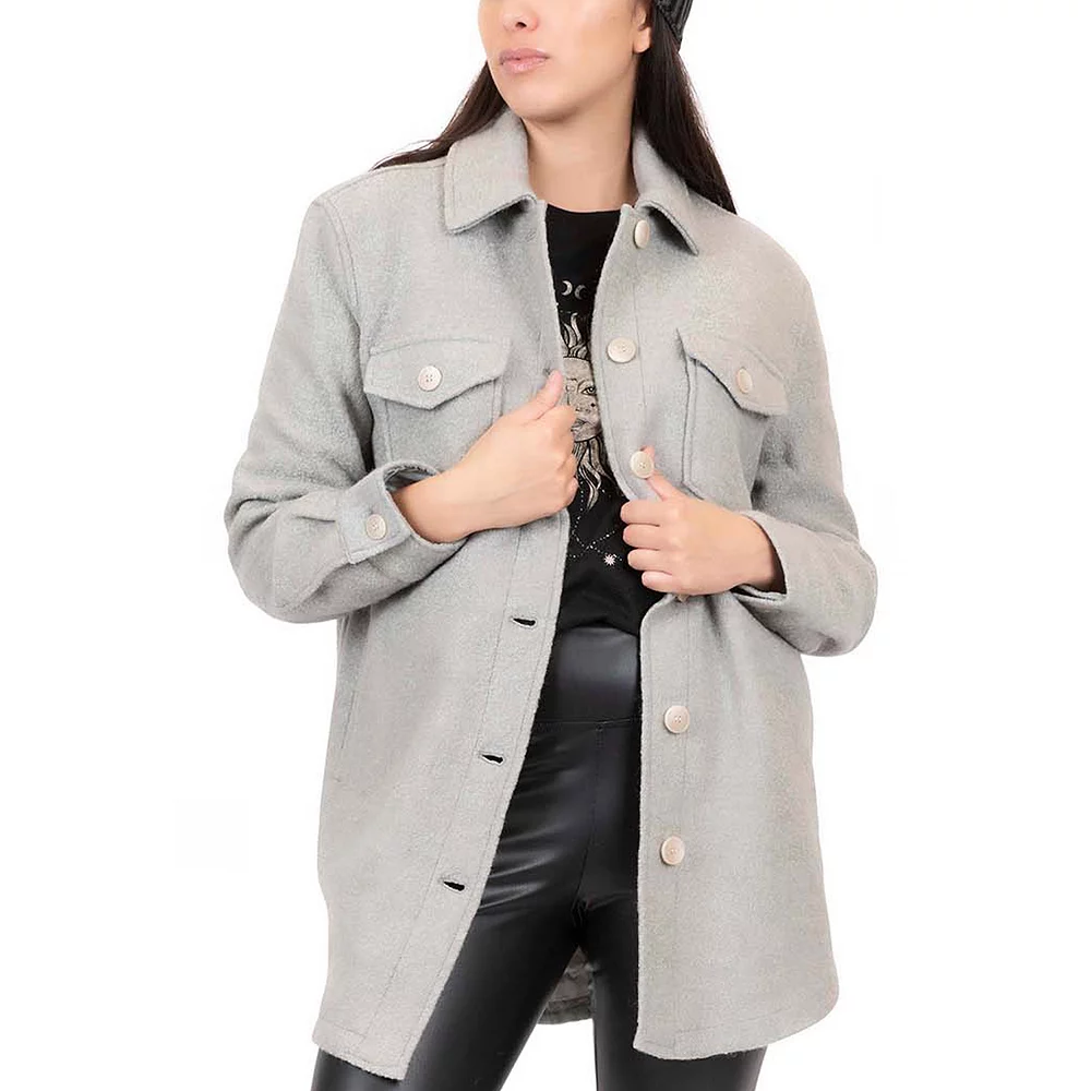 Add a touch of trendy style to your look with this women’s Coffee Shop Faux Wool shirt jacket.