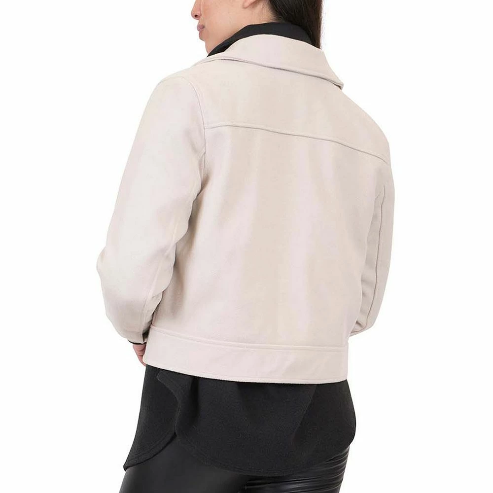 Add a touch of edginess to your look with this women’s Coffee Shop Faux Wool trucker jacket.