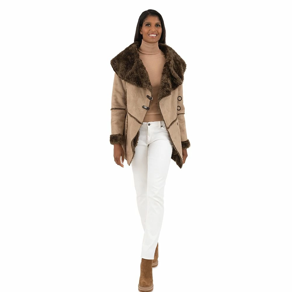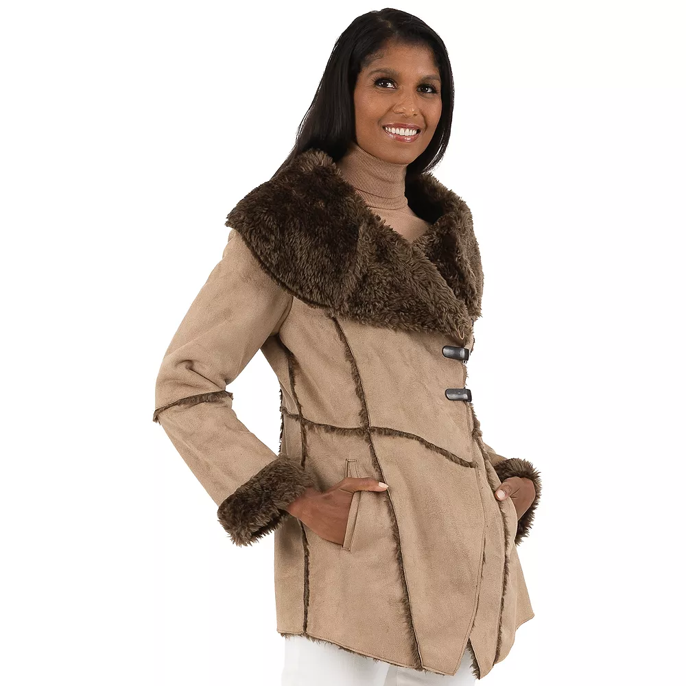 The faux-fur lining and faux-shearling construction of this women’s Fleet Street coat give you a luxe winter look.