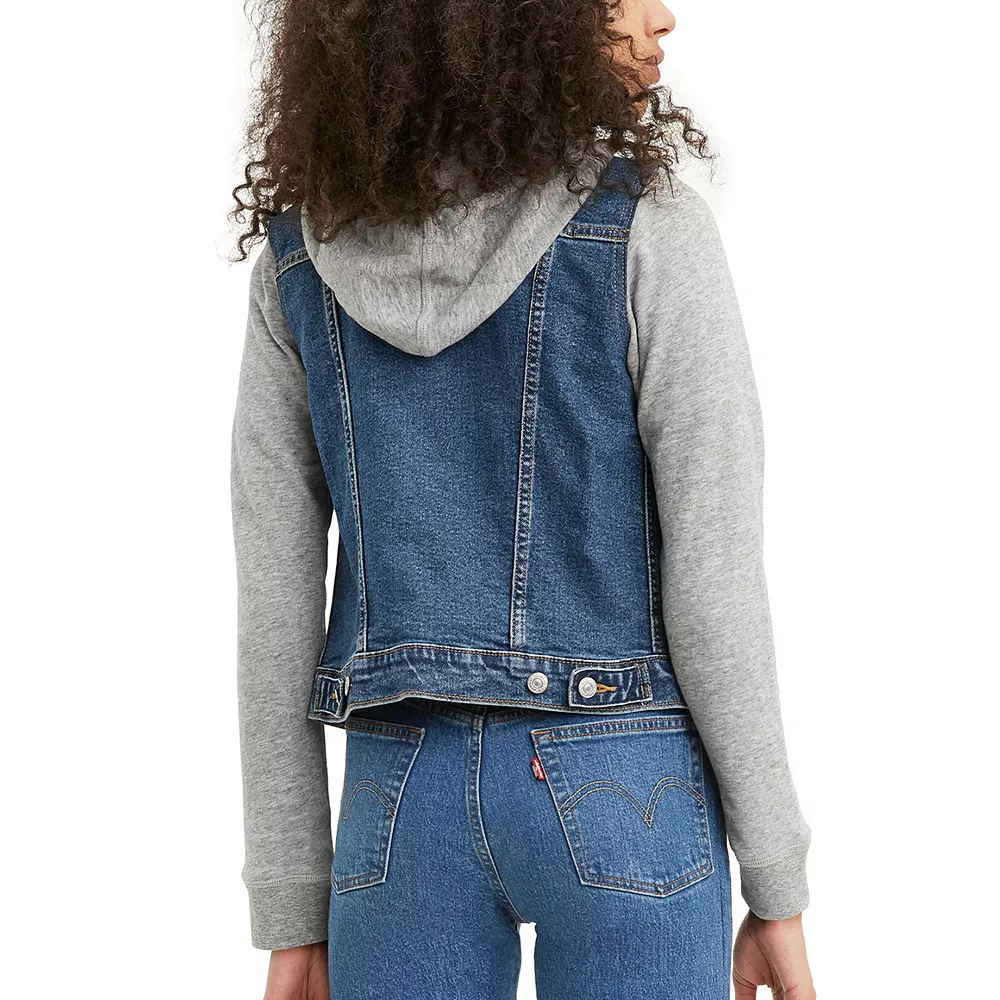 With knit sleeves and hood and a denim body, this women’s Levi’s jean jacket has everything you love about a hoodie and a denim jacket, together in a new favorite.