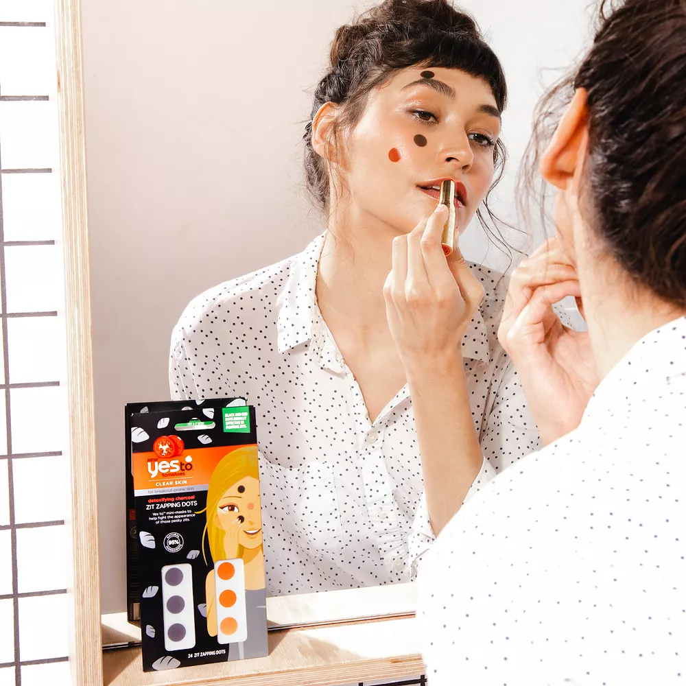These fun, adhesive micro-mask dots from Yes To provide a concentrated treatment for blemishes for zapping zits overnight! Formulated with salicylic acid, charcoal and tomato extract to help fight breakouts and have fun while doing it!